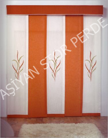 Japon perde, kullanımı pratik, dekoratif özelliğe sahip iç açıcı bir kullanımı vardır. Bantları dikey perdeye göre daha geniştir, sabit özelliğe sahiptir.