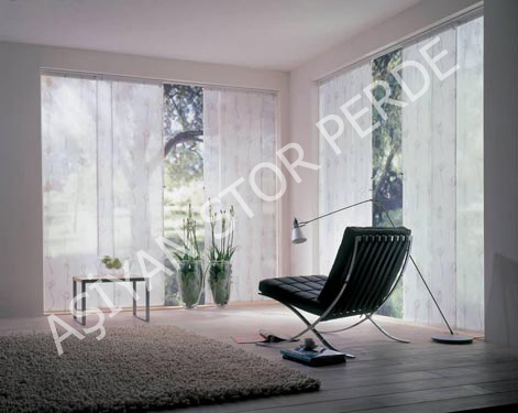 Japon perde, kullanımı pratik, dekoratif özelliğe sahip iç açıcı bir kullanımı vardır. Bantları dikey perdeye göre daha geniştir, sabit özelliğe sahiptir.